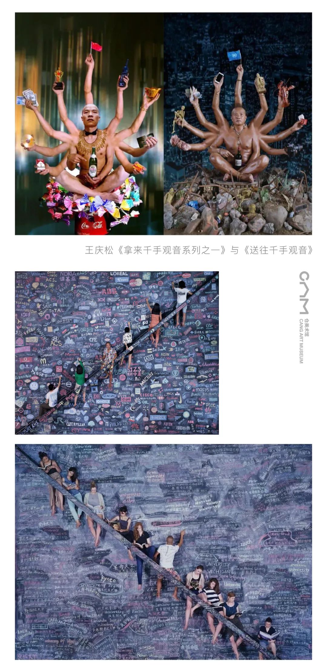 艺术家王庆松的《拿来千手观音系列之一》与《送往千手观音》,1999到2019,跨越十年,从外向的时代、社会的变化,到内向的人的内心的探寻,意味深长。