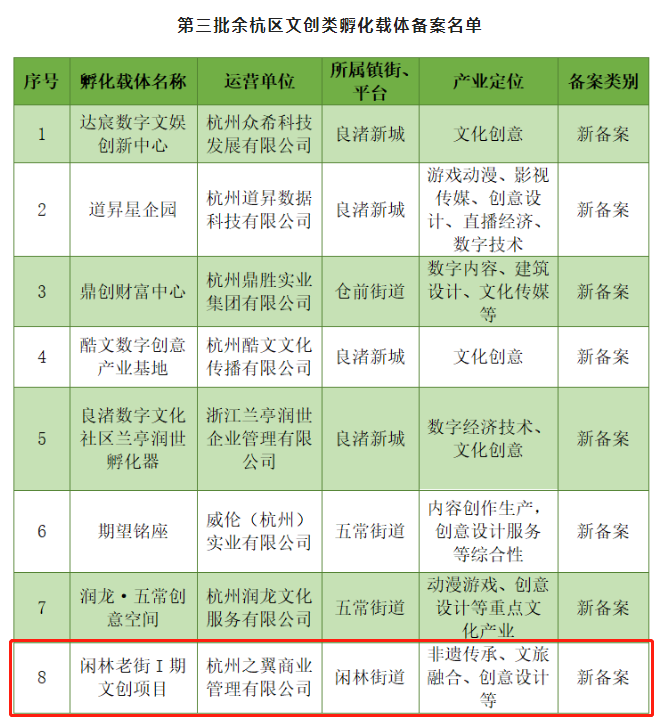 唐域商业丨喜报!闲林埠老街入选2022年余杭区第三批文创类孵化载体备案名单