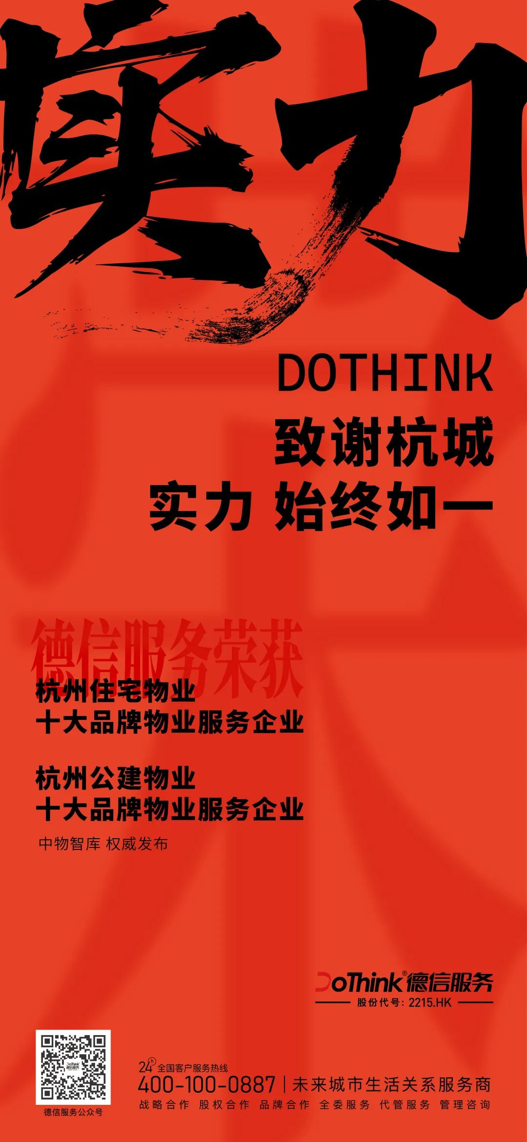 深耕杭城,久久为功。此次住宅、公建两项大奖,毫无疑问是对德信服务在大本营杭州持续深耕,加速服务品质化进程,铸就良好口碑的一次行业认可。未来,德信服务将持续做好住宅服务、产商服务、城市服务三大业态服务,坚守初心,持续精进服务品质,勇立行业潮头。在基础物业服务领域强基固本的同时持续拓展产业边界,培育业务核心增长点,朝着高质量发展、稳健持续增长的“未来城市生活关系服务商”的战略愿景不断奋斗。
